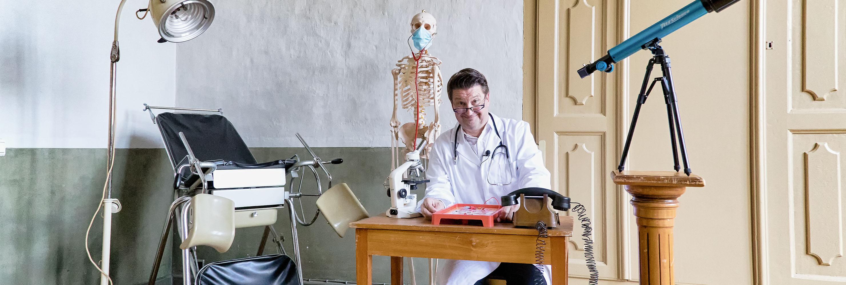De hoogstpersoonlijke dokter van Sint & Piet. Dankzij zijn vele zalfjes, poedertjes en wonderdrankjes voelt de Sint zich, ondanks zijn gezegende leeftijd, nog altijd kiplekker.